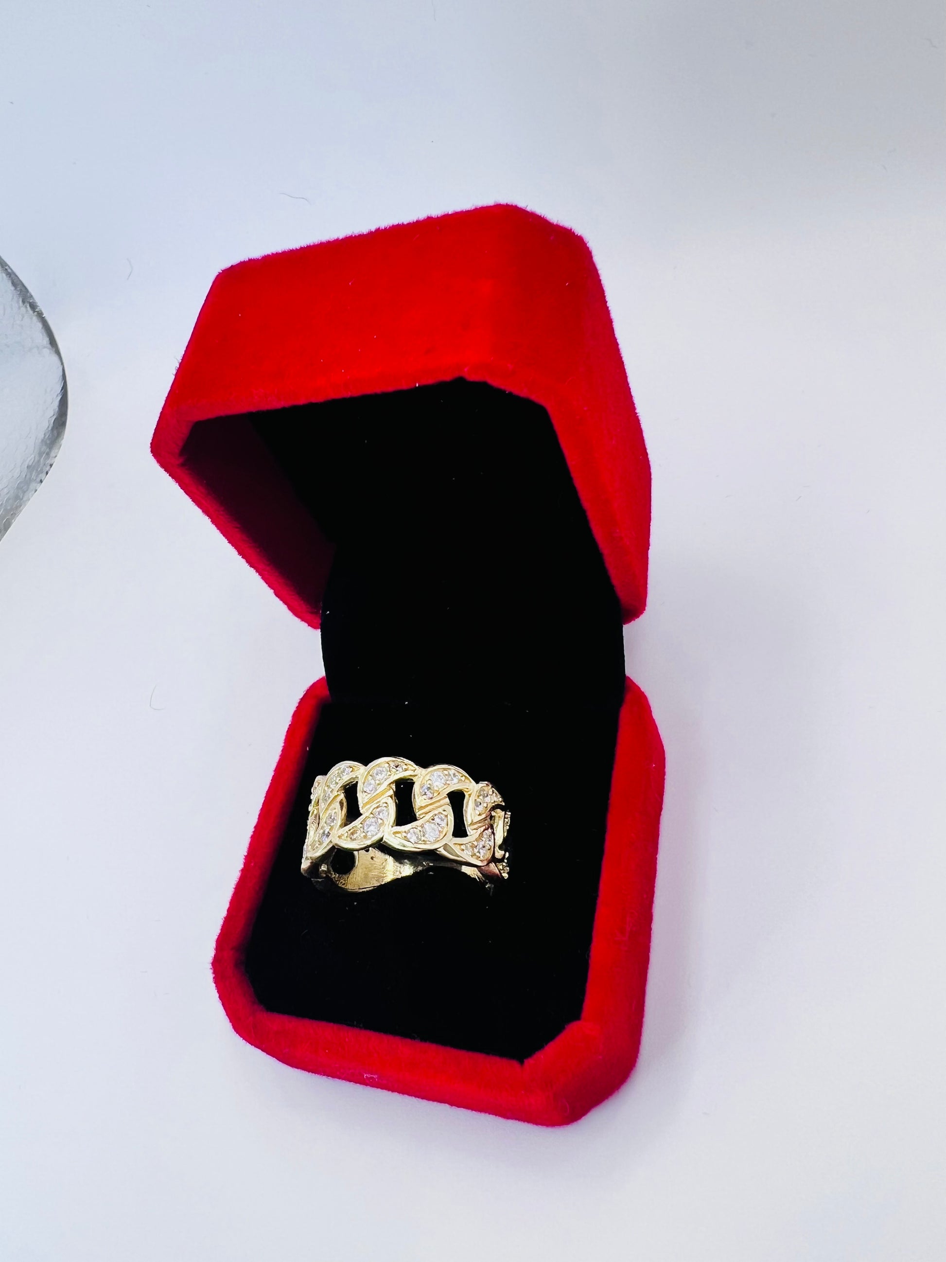 Make a statement with our luxurious CUBAN LINK CZ RING. This exquisite ring features a classic cuban link design adorned with sparkling CZ stones, adding a touch of elegance and sophistication to any outfit. Elevate your style and make a lasting impression with this premium piece.
