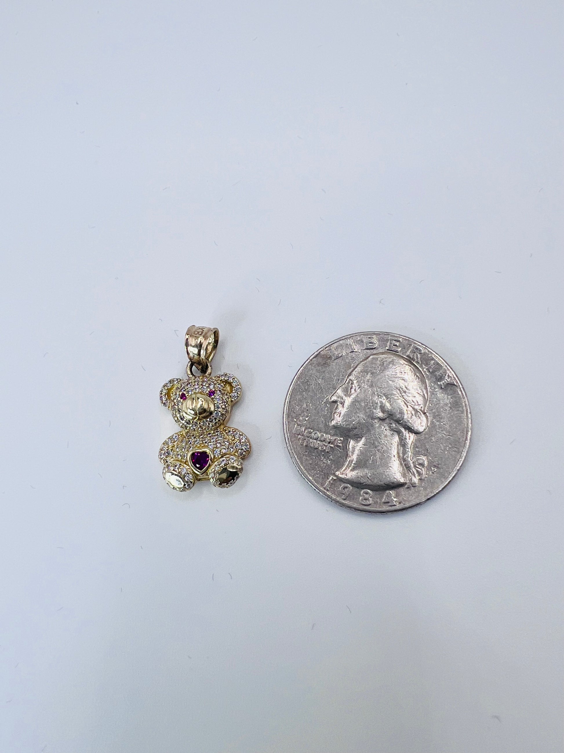 Elevate your style with our CZ Teddy Bear adorned with sparkling CZ stones. This exquisite piece will add a touch of glamour and luxury to any outfit. Perfect for those who appreciate elegance and sophistication. A must-have for any fashion-forward individual.
